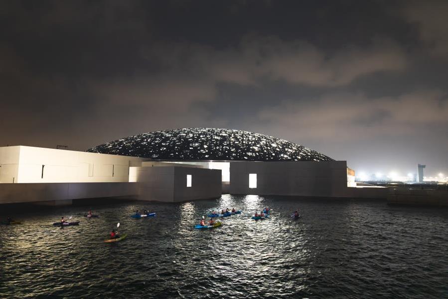 To witness the grandeur of the museum in a unique way, it's highly recommended you kayak around Louvre Abu Dhabi with tours that operate day and night.